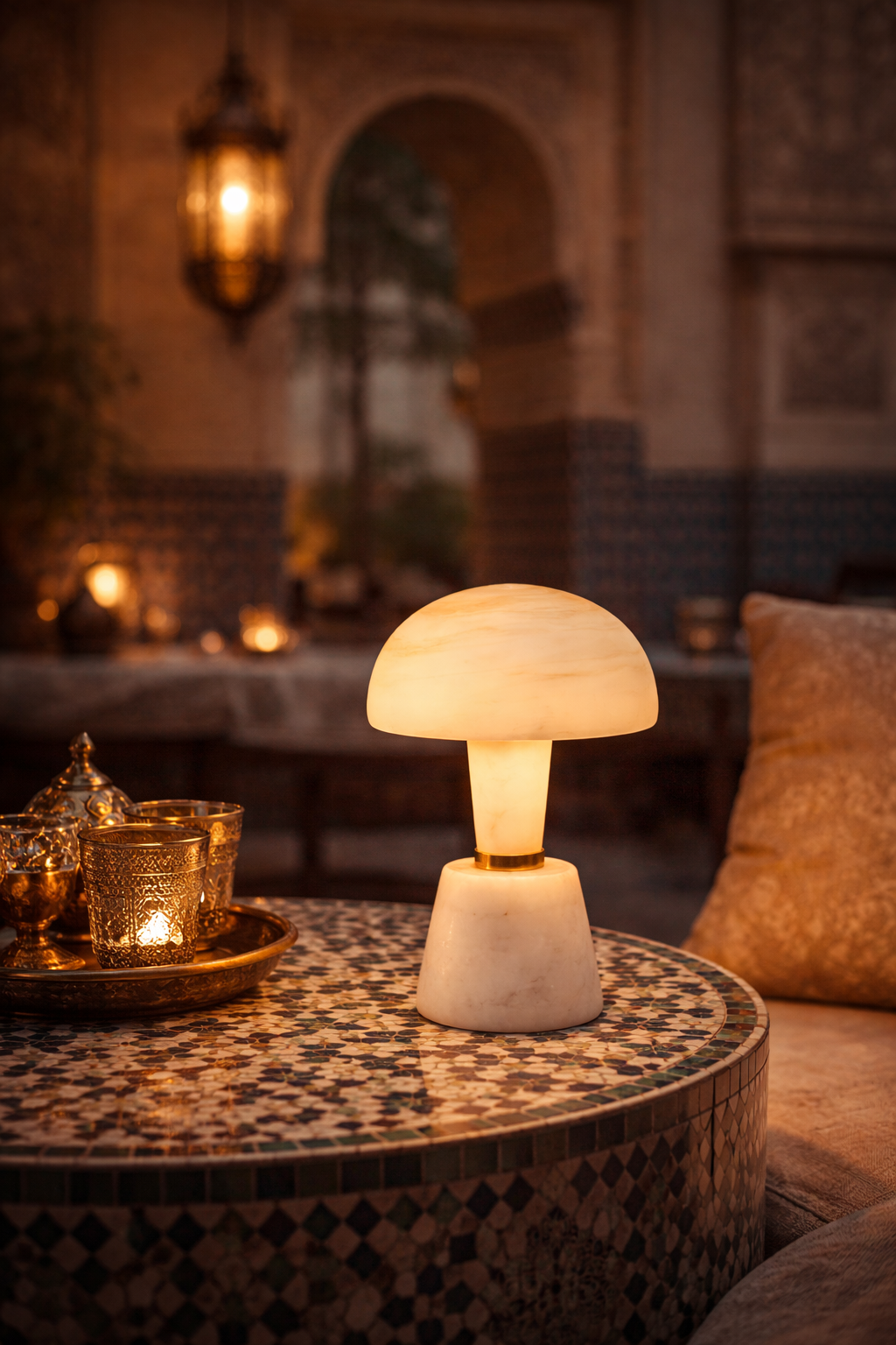 - Matériaux : albâtre naturel, métal