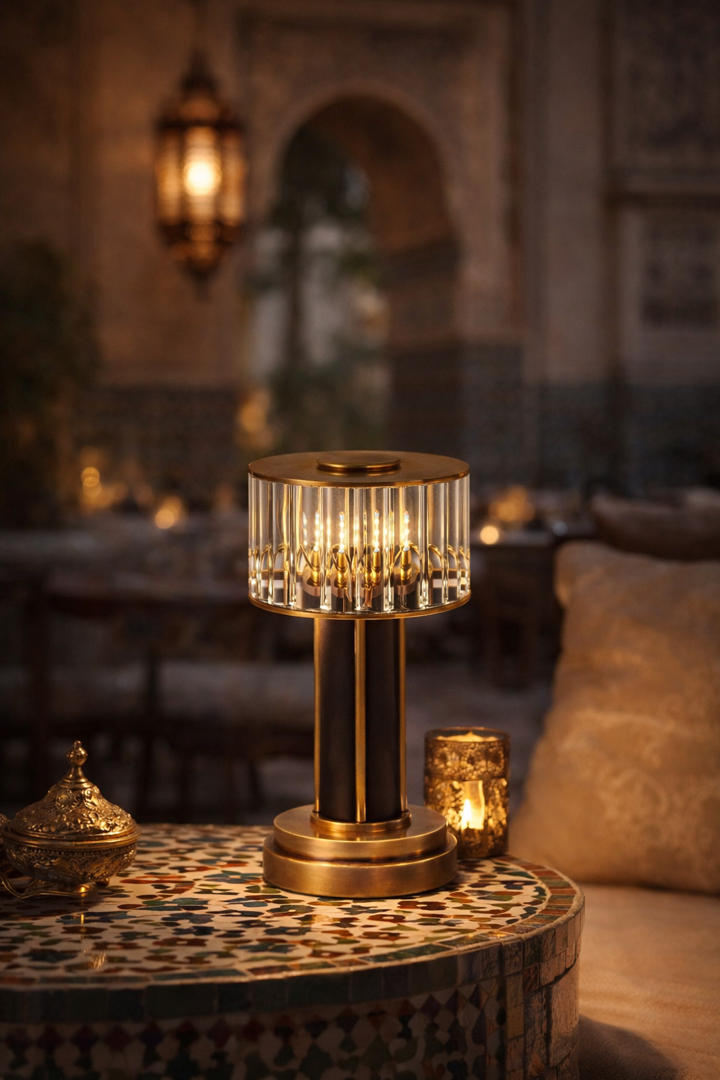 La lampe MINI GLASS DRUM de Collier Webb est une lampe de table portable au design sophistiqué, alliant matériaux nobles et savoir-faire artisanal. Son abat-jour en verre filé à la main, associé à un habillage en cuir et une tige en laiton, crée un contraste élégant entre transparence et matière. Compacte mais visuellement présente, elle diffuse une lumière douce et chaleureuse, idéale pour les tables de restaurant, bars ou espaces lounge.