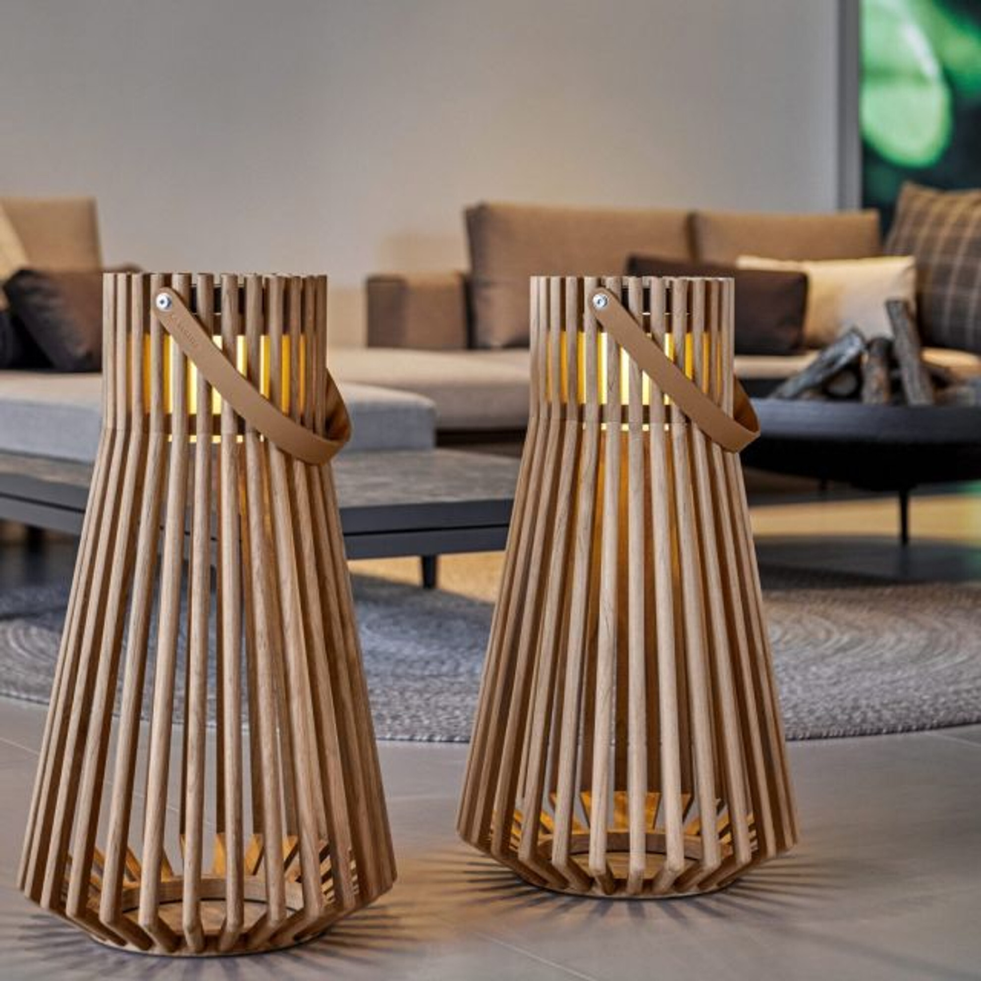 La lampe Ambient Ray de Gloster, conçue par Henrik Pedersen, est un luminaire extérieur au design naturel et raffiné. Sa structure en teck finition brossée, associée à une poignée en cuir, apporte une touche chaleureuse et élégante à vos espaces. Sans fil et rechargeable, elle diffuse une lumière douce idéale pour créer une ambiance conviviale en extérieur.
